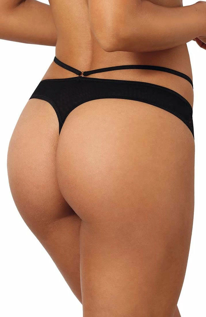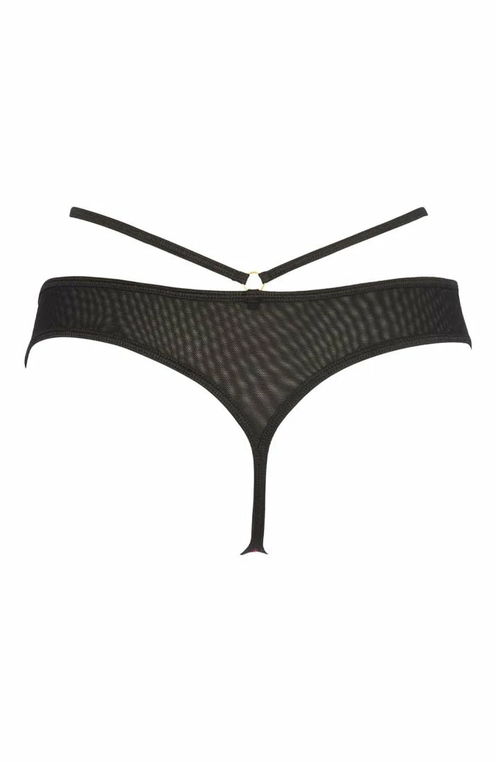 Black & red cage-strap thong