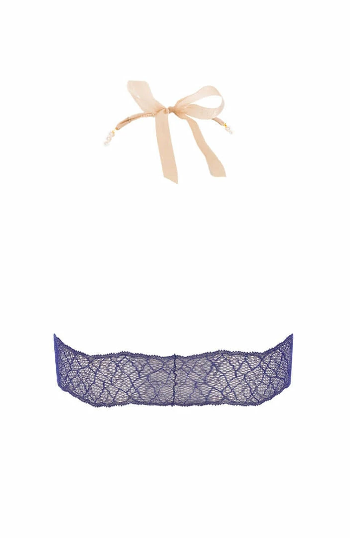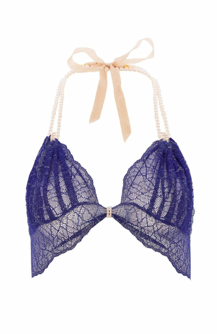 Blue bralette with pearl strand