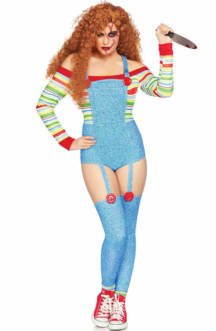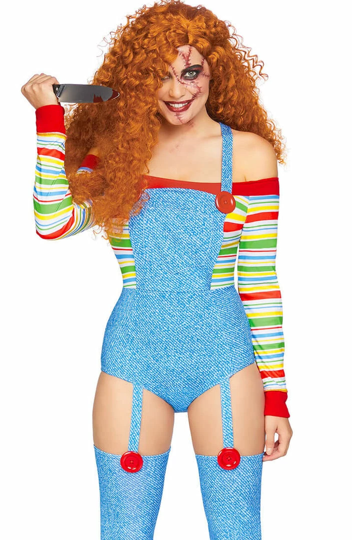 This Halloween, go all-in, with this incredibly creepy costume! It really doesn’t get any better than with this Iconic doll costume. Except, if your ‘partner in crime’ girlfriend dresses-up as Chuckys girlfriend in the sassy Tiffany costume – or your boyfriend in our jumpsuit Chucky costume. Double trouble!