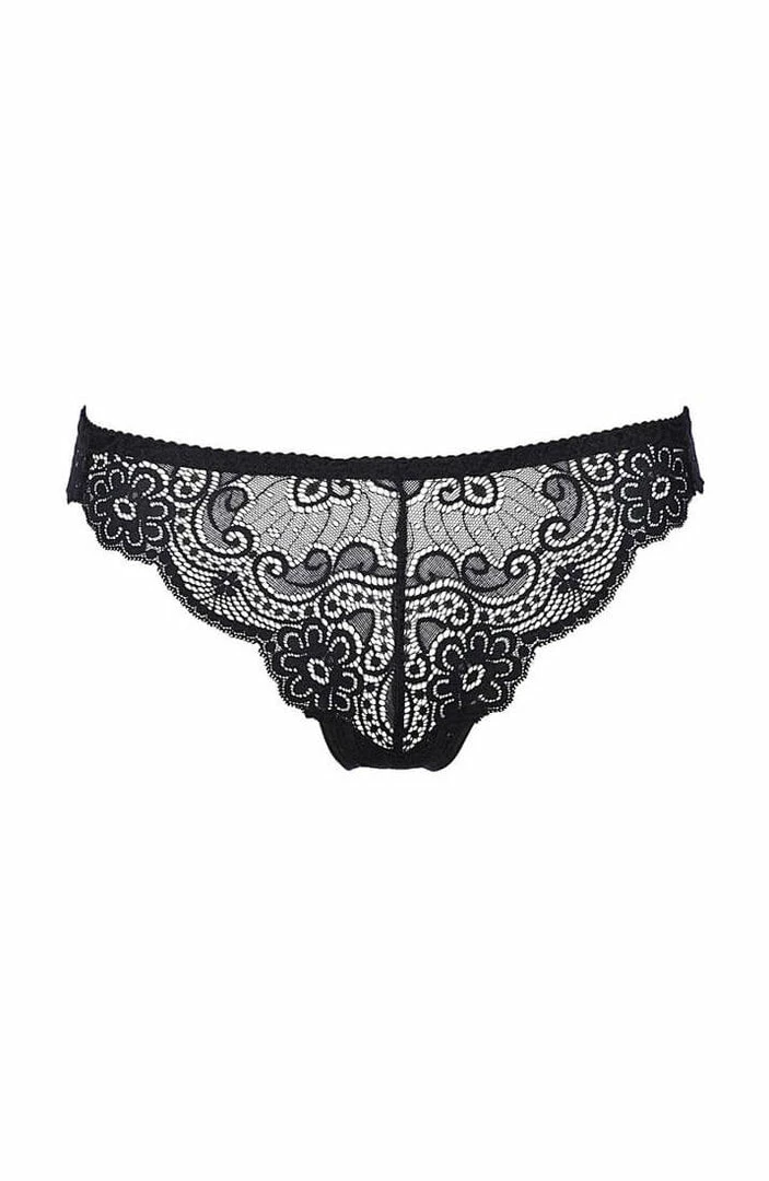Sexy black Brazilian panty in pure lace and with a small delicate bow detail at the back.
