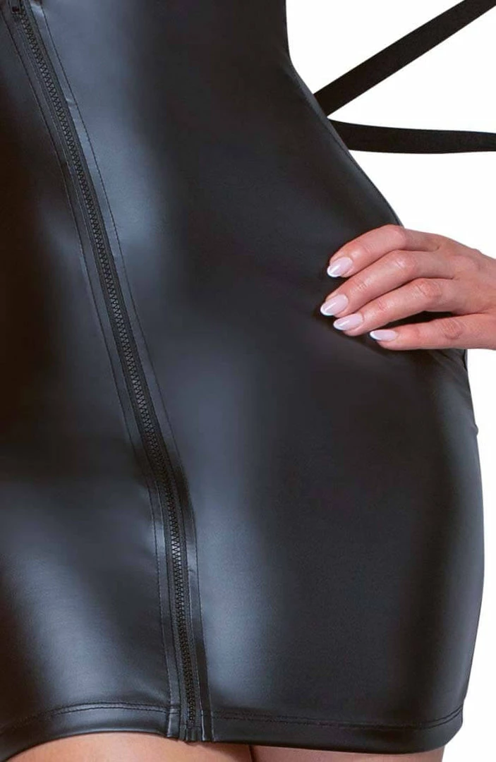 Black wet look dress with tie-back