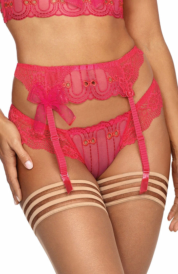 Elegant and feminine garter belt in the most divine raspberry pink lace.