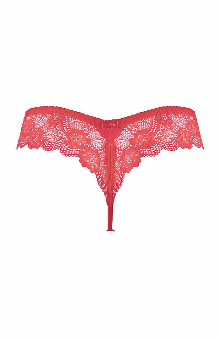 Elegant and feminine thong in the most divine raspberry pink lace.