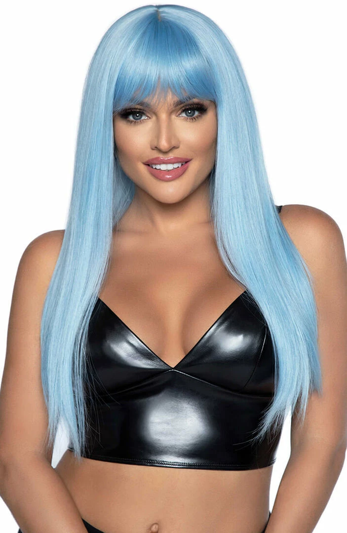 Long straight blue wig with fringe