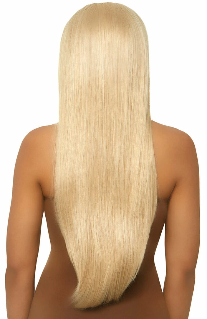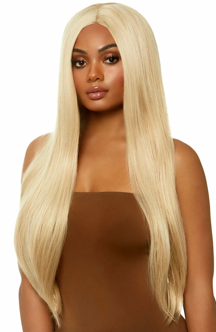Extra long straight center part blond wig. Adjustable and stretchy wig cap for the perfect fit.