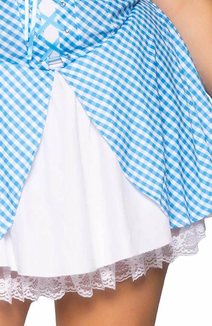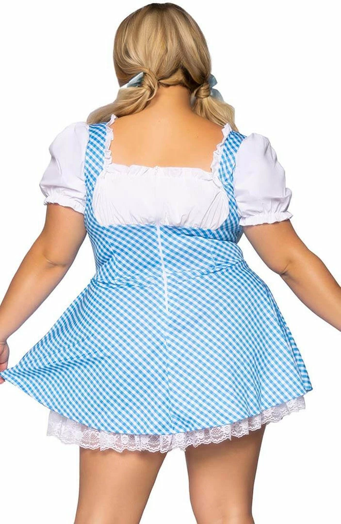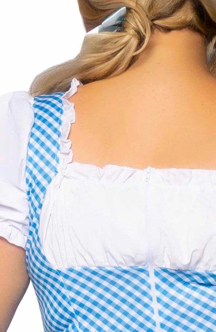 Mud or Make-up? It’s up to you what kind of farmer girl you’re gonna play in this sexy plus size farm girl costume featuring a blue and white fitted gingham dress with a cute lace-up front, a ruffled trimmed peasant top and a fluttering skirt with an apron accent.