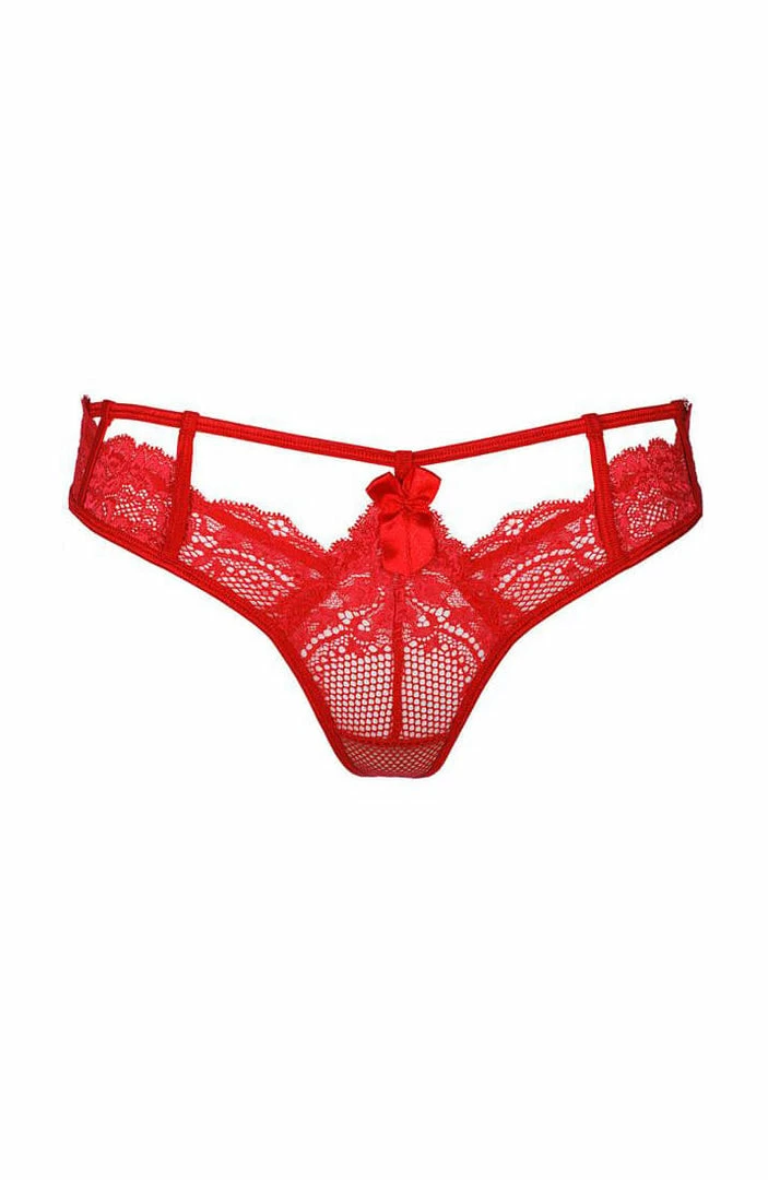 Sexy red thong in the softest lace with sensual cut-out at the front.