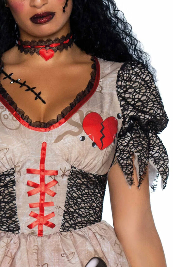 Our most complete Voodoo doll costume featuring a beige/brown dress with SO many absolutely incredible details e.g. ridpped fringes that give the costume a raw and rustic look. The Voodoo doll bracelet and necklace are included in the costume.
