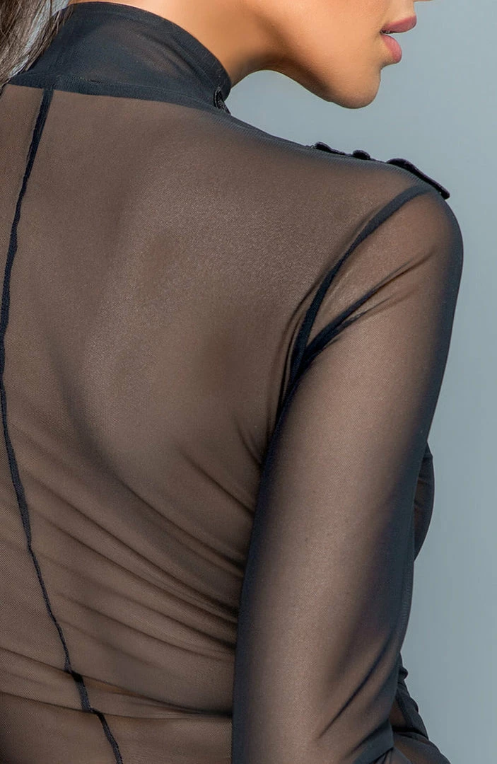The shoulders of the bodysuit are decorated with elegant and feminine embroidery.