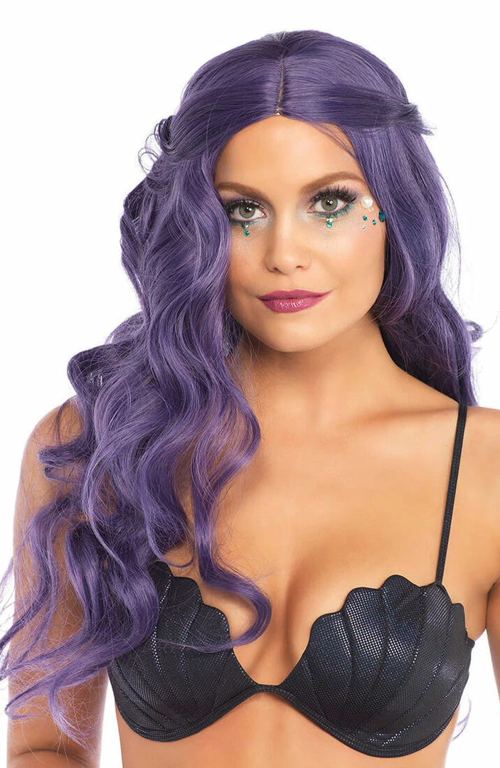 Purple wig with long beautiful waves. The wig is ideal for the mermaid look, but can be worn with anything!