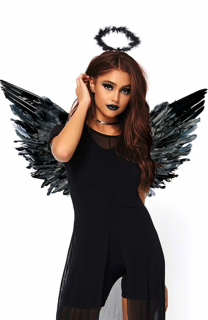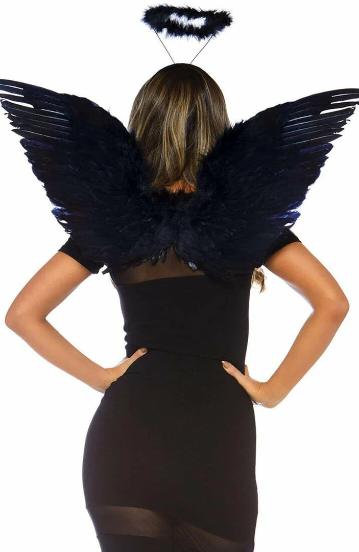 Angel kit accessories includes a black headband with a black glory and a pair of black angel wings.