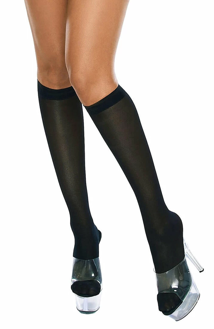 Opaque black knee highs stockings are a great way to top off your sexy school girl costume.