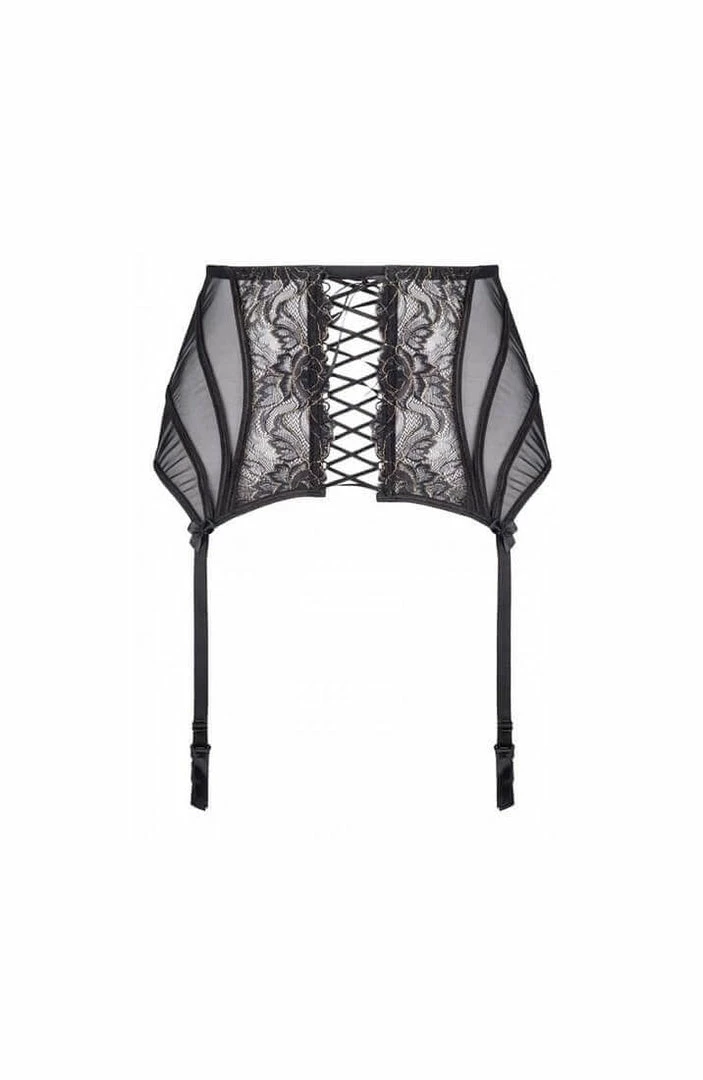 Black plus size underbust garter belt with gold shimmer