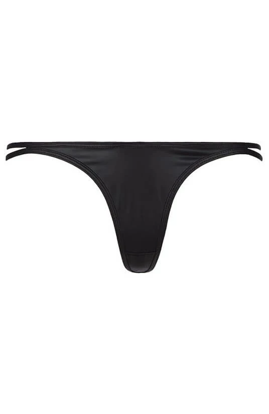 Black wet look thong