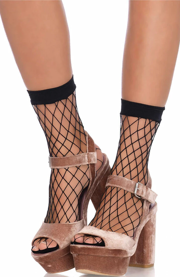 Black wide fishnet ankle highs