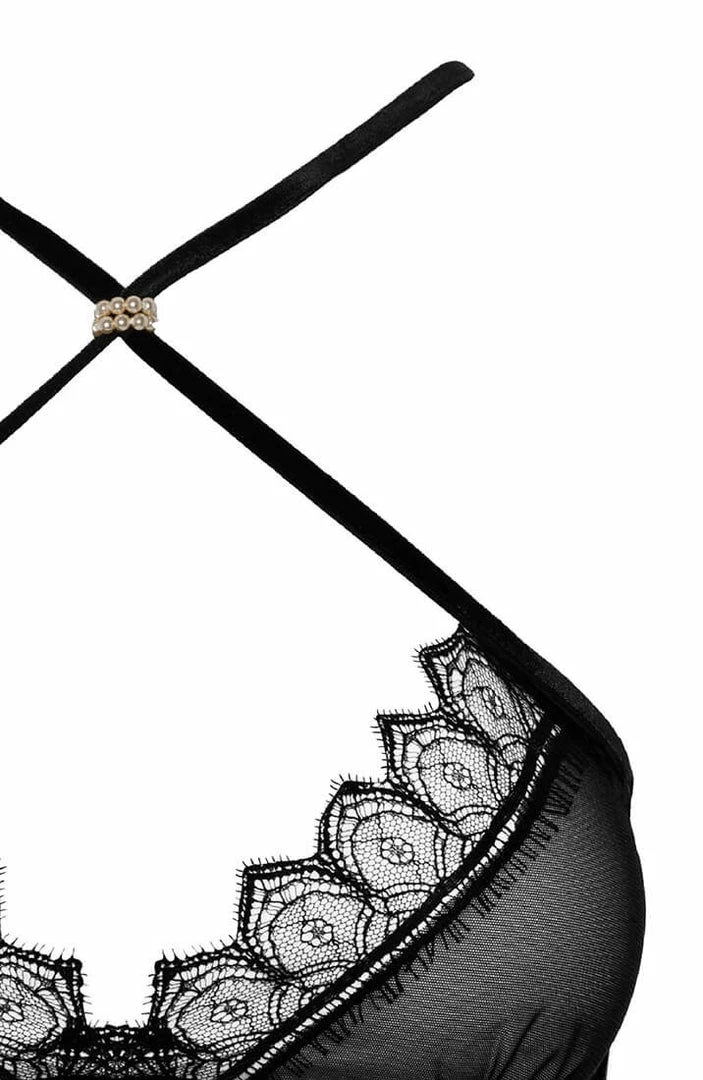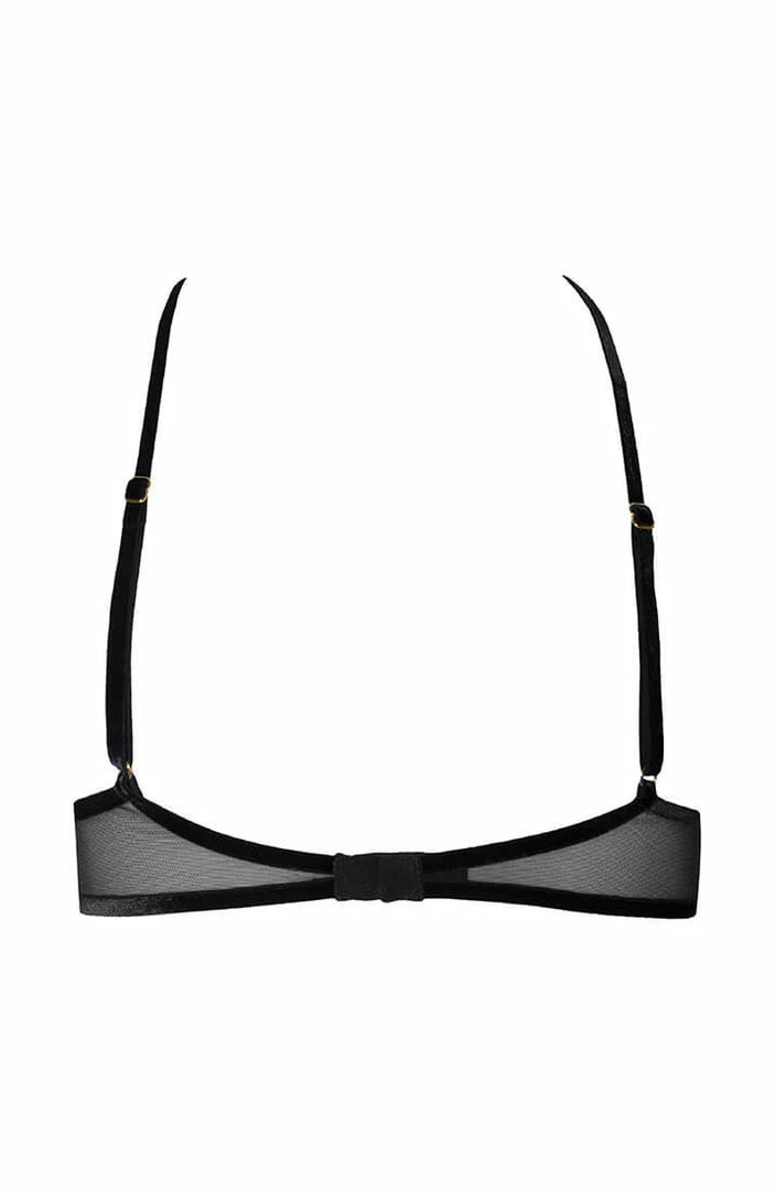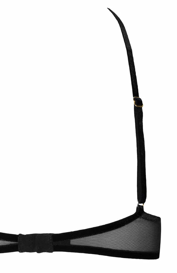 Exclusive bralette in soft and delicate tulle with beaufitul leaf lace details and thin velvet trim.