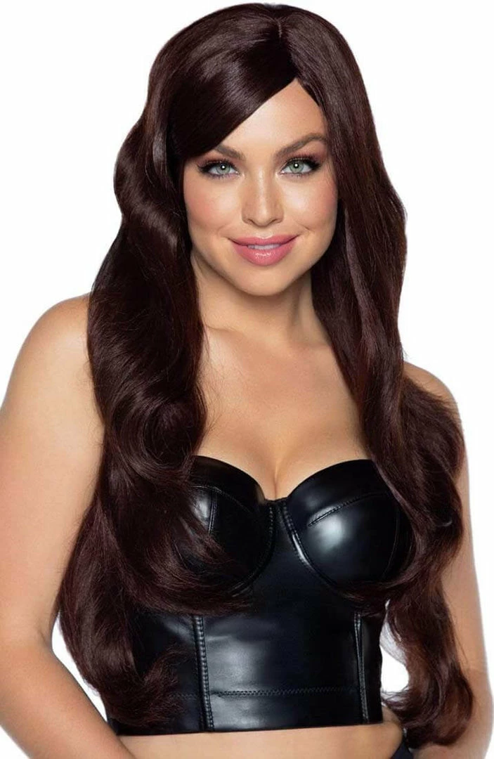Create your own mysterious character with this brown long haired wig with soft waves.