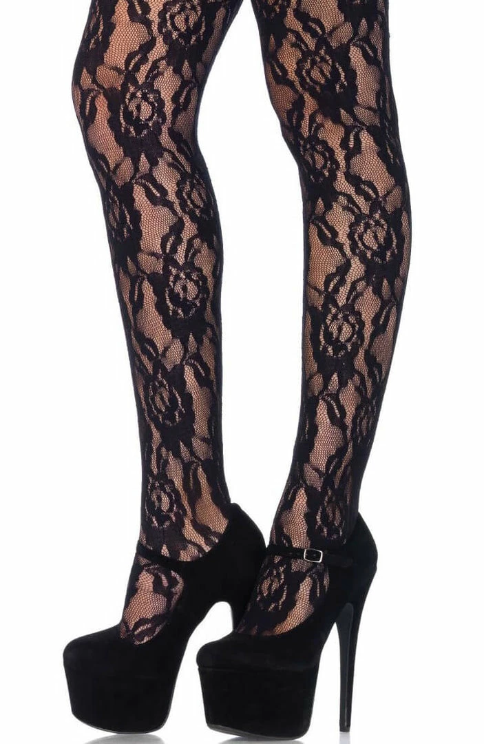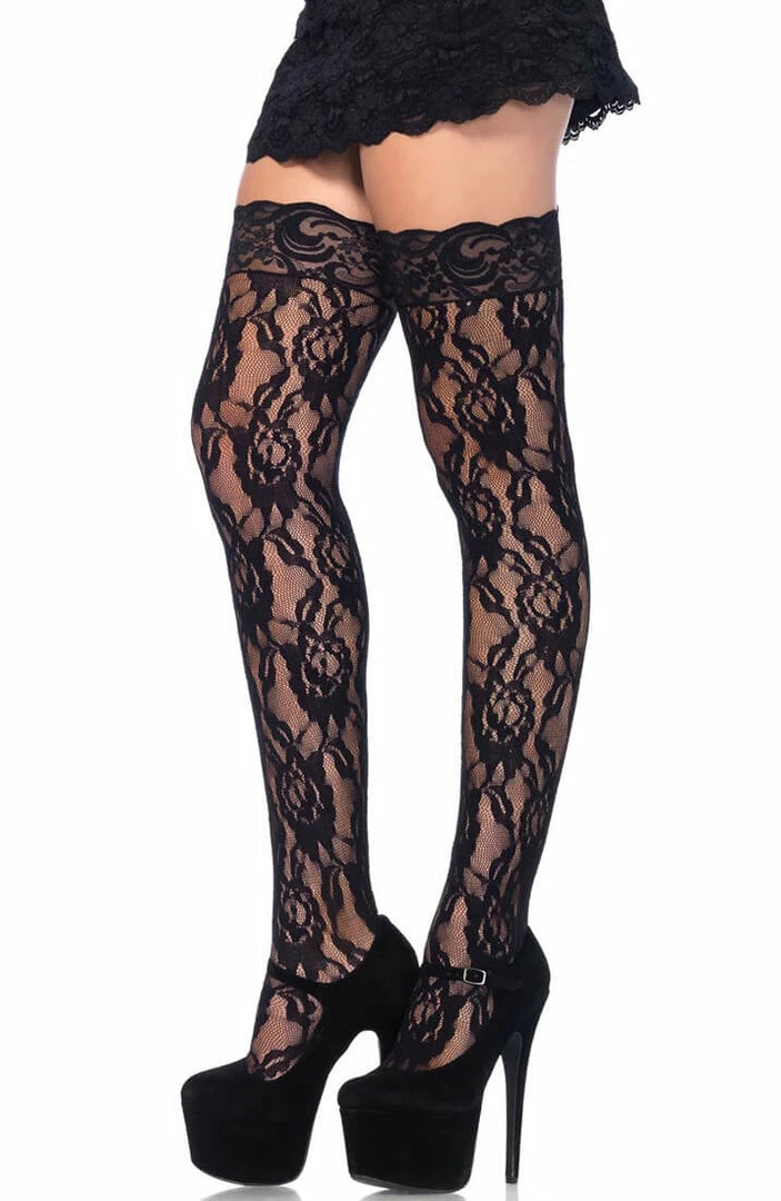 Lace stockings with rose pattern