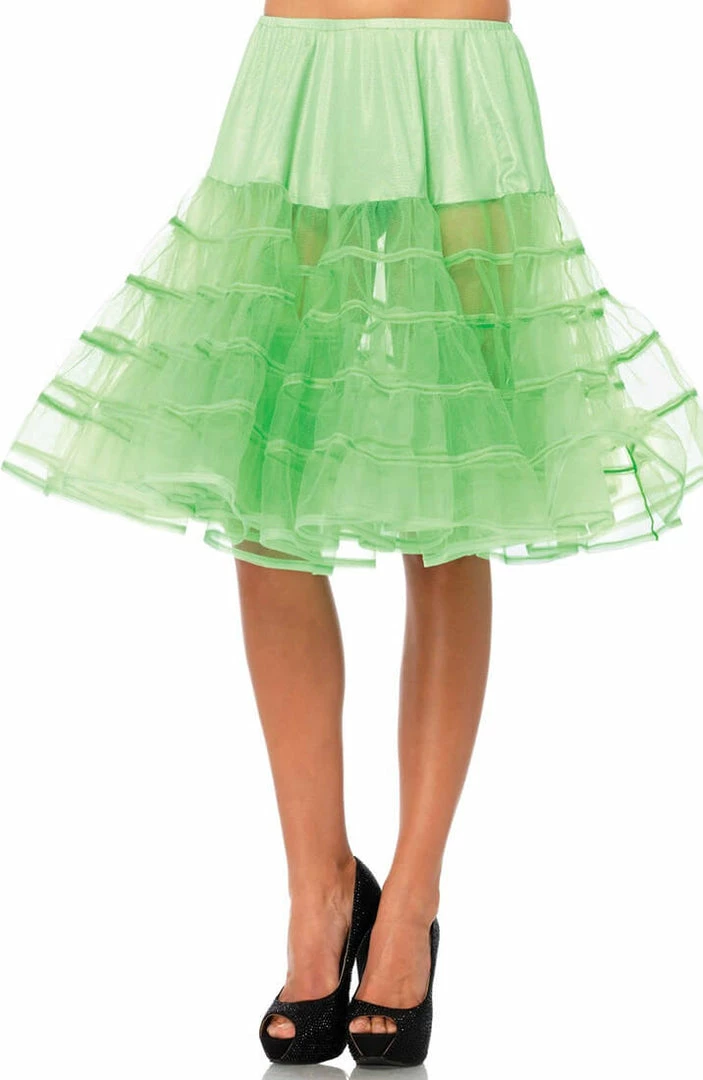 Beautiful and simple neon green knee length petticoat in a voluminous design. Provides an amazing structure and volume to your dress or costume.
