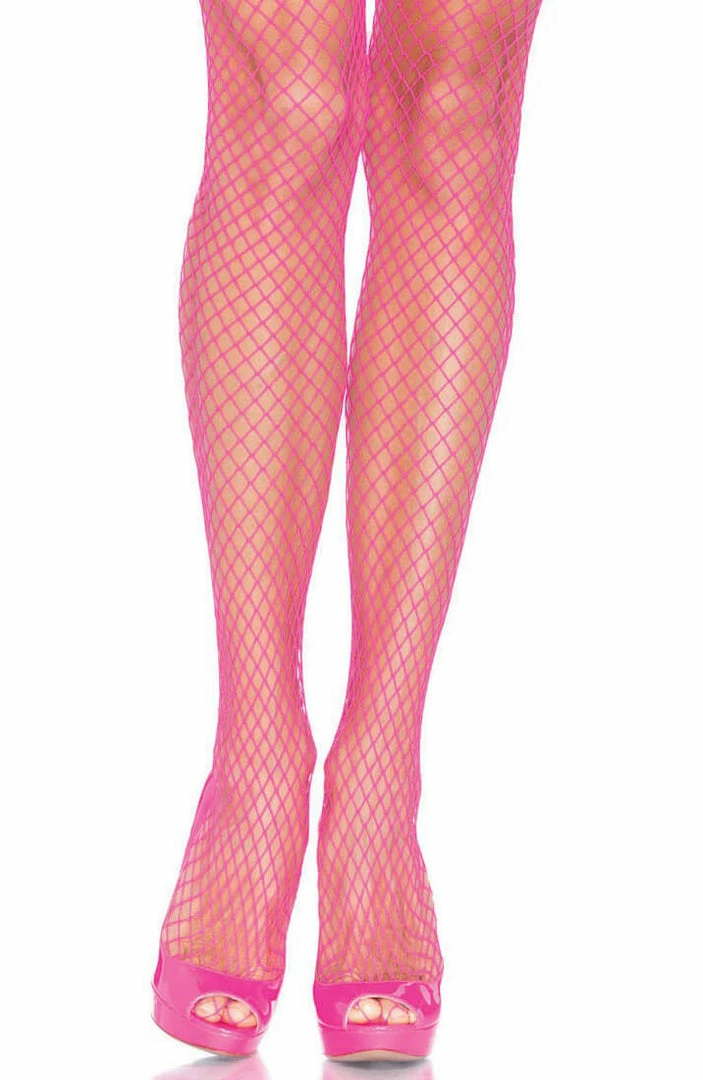 Make your outfit instantly sexier with these neon pink fishnet pantyhose featuring an allover nylon fishnet.