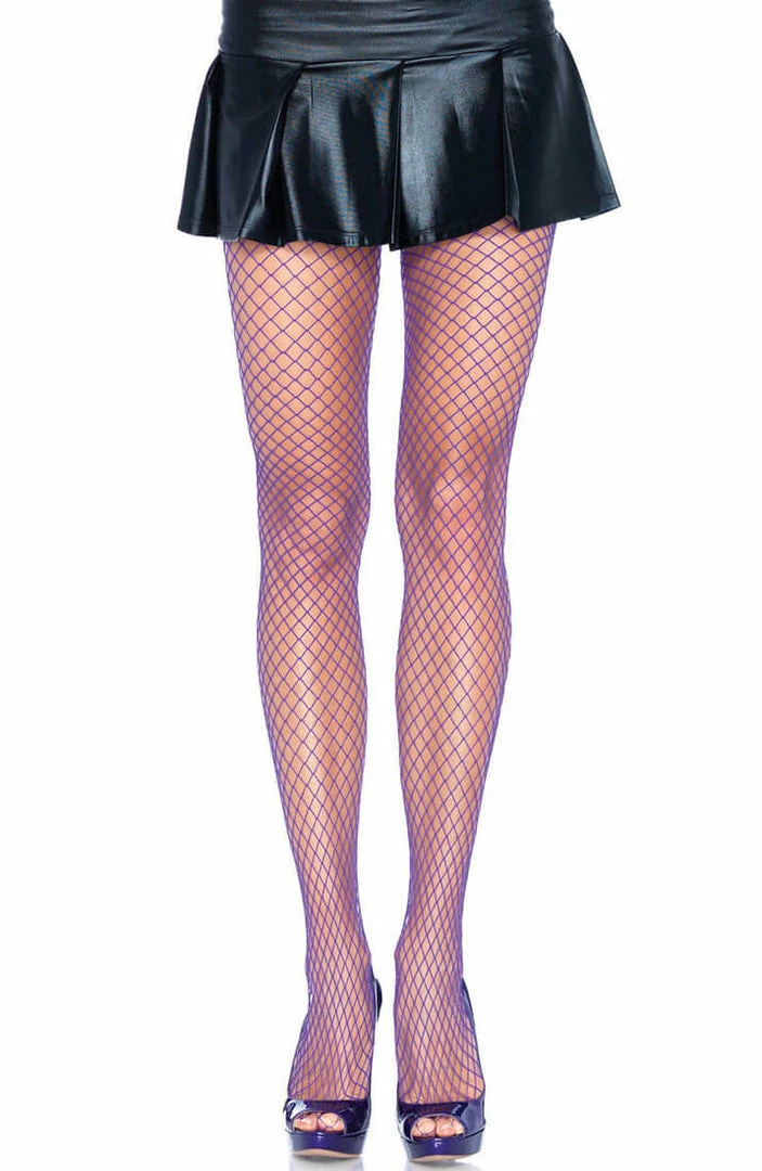 Make your outfit instantly sexier with these purple fishnet pantyhose featuring an allover nylon fishnet.