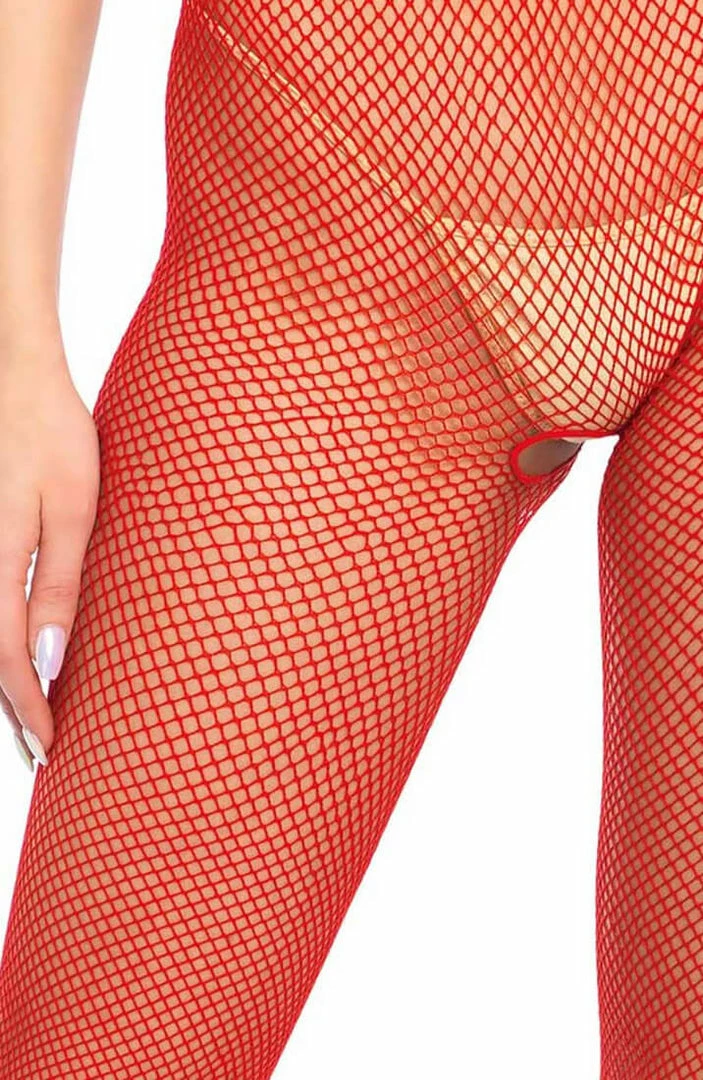Red crotchless fishnet bodystocking