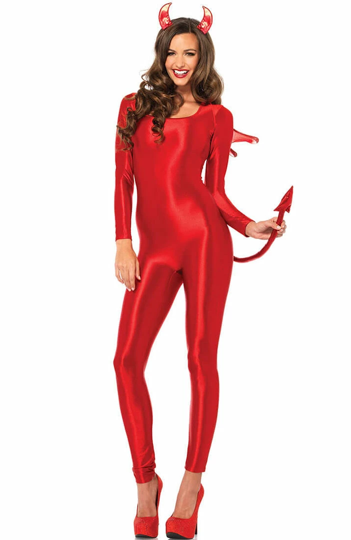 Sexy red figure-hugging spandex catsuit – fitting the female curves perfectly!