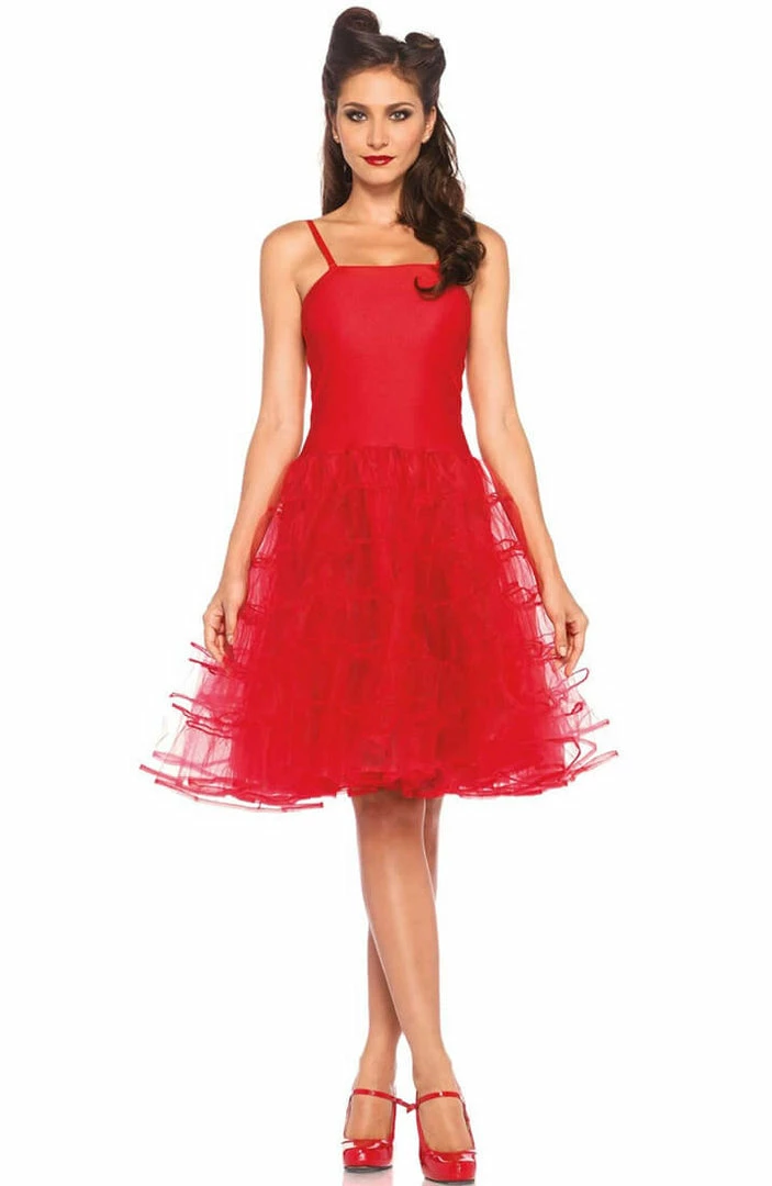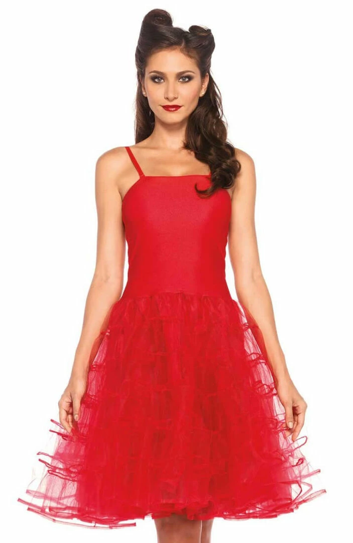 Chic, sexy and simple red Rockabilly dress with detachable straps. The dress is in stretchable material with a beautiful, big and voluminous skirt.