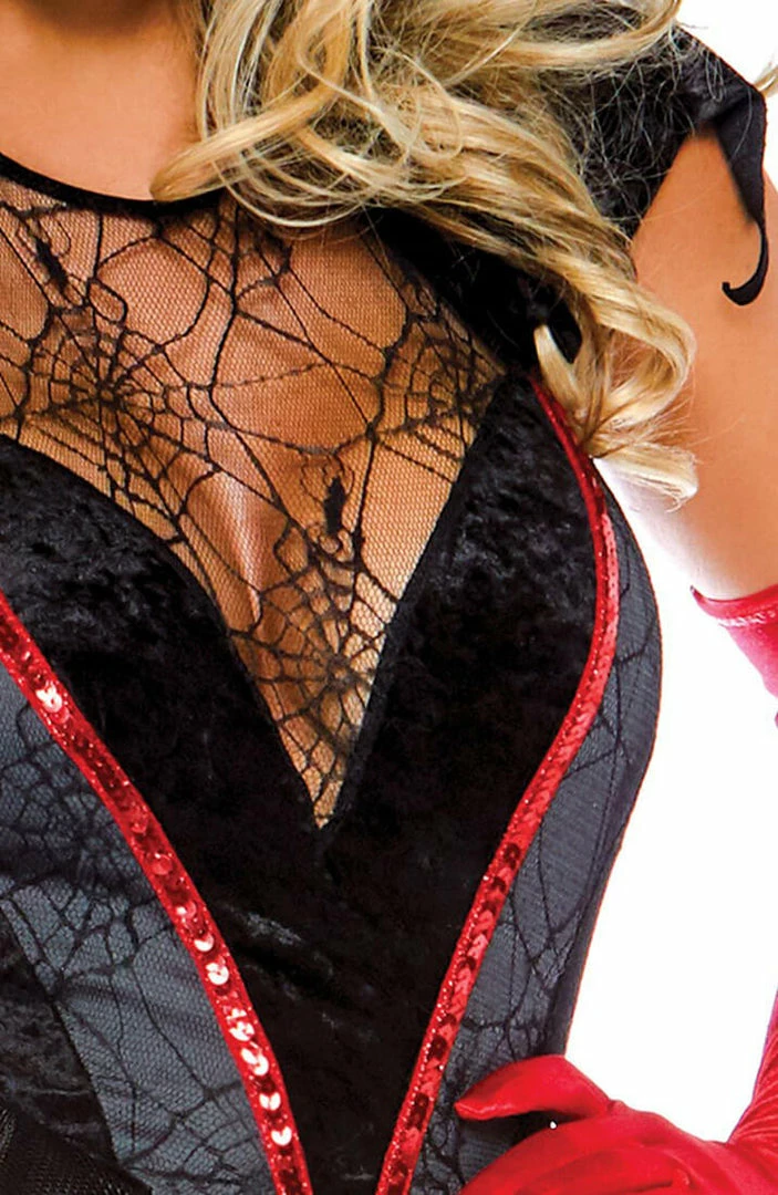 Catch them in your silky web with this ultra sexy black widow 3 piece spider costume!