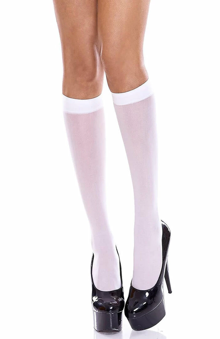 Opaque white knee highs stockings are a great way to top off your sexy school girl costume.